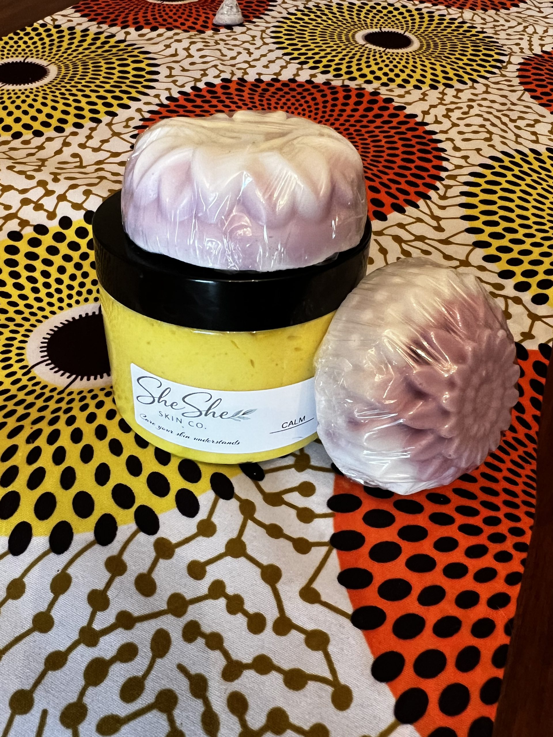 10 oz Calm Body Butter + 5 oz Calm Massage Bar. Lavender and sandalwood evening ritual.